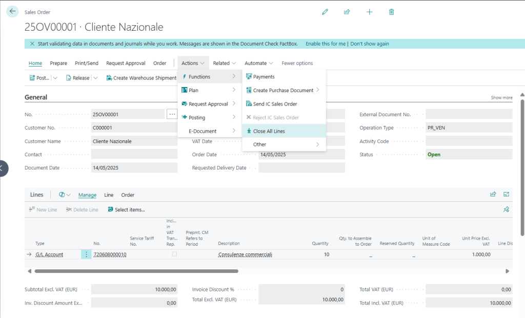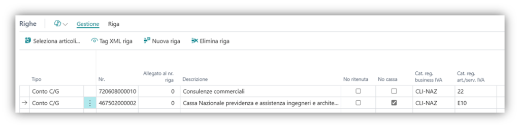 Tramite azione Suggerisci riga cassa o eseguendo il rilascio del documento viene generata la riga della cassa previdenziale.
