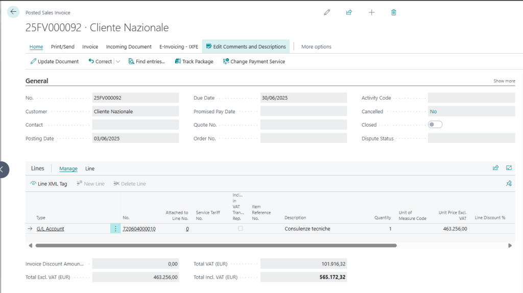 Tale codice è recuperabile come default dalla anagrafica cliente  o dal Setup Finance – Lodestar, altrimenti è possibile inserirlo manualmente nel documento.