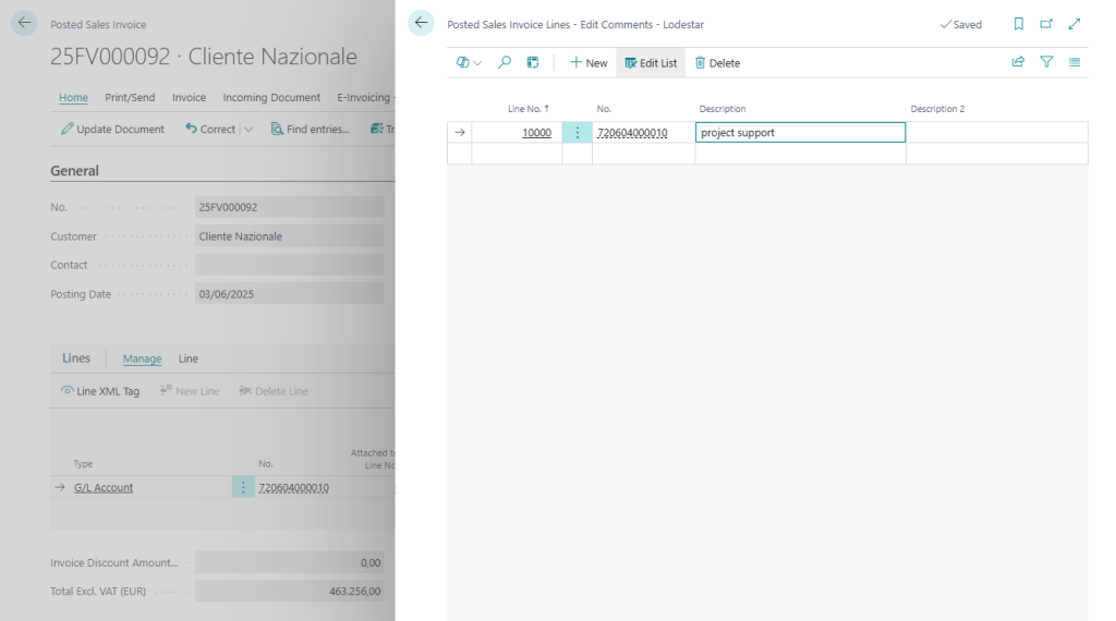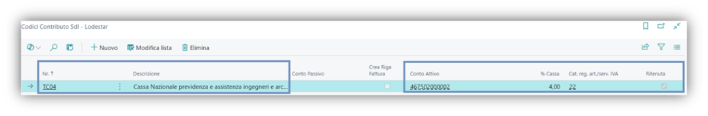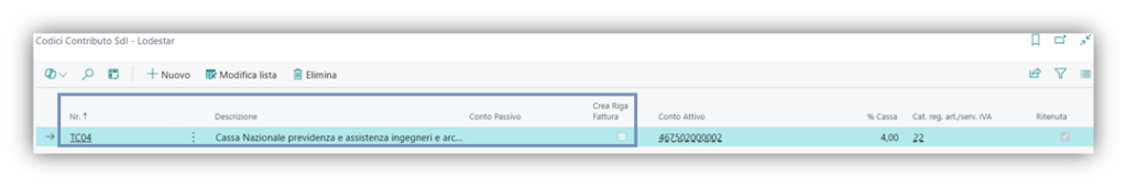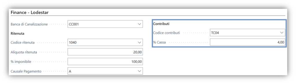 Se è presente nel tab Finance – Lodestar il Codice Cassa, è prevista la gestione per il documento.