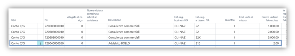 Supponiamo di voler addebitare il bollo virtuale al cliente: