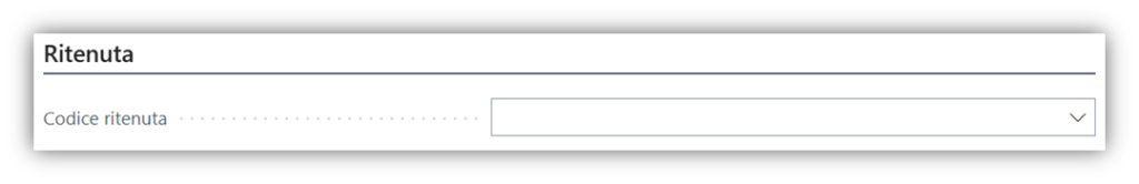 • Codice Ritenuta: utilizzato per assegnare un codice ritenuta specifico da applicare ai documenti.