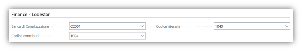 Nella sezione Finance – Lodestar è possibile impostare le seguenti informazioni: