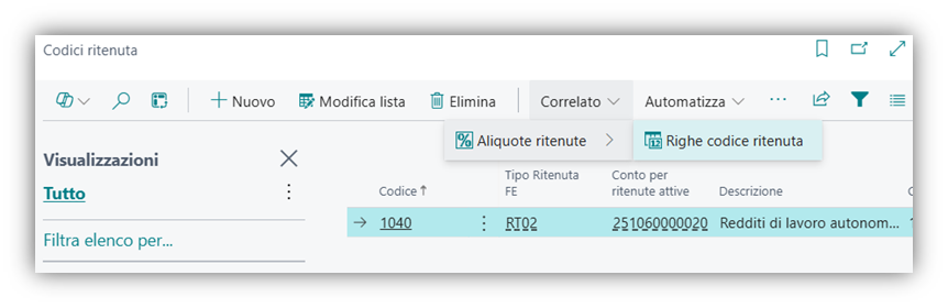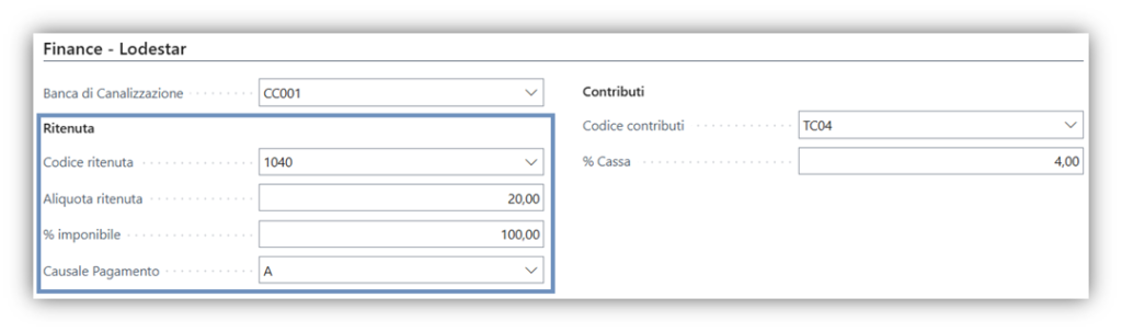 Se è presente nel tab Finance- Lodestar il Codice Ritenuta, è prevista la gestione per il documento.