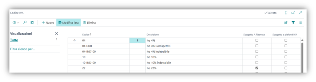 Nella pagina Codici Iva si può specificare tramite gli appositi campi se il singolo codice è: