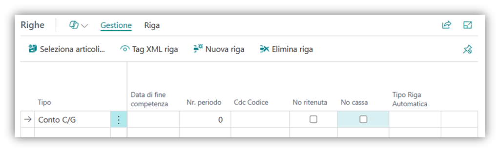 Senza questa impostazione la riga va creata manualmente dall’utente.