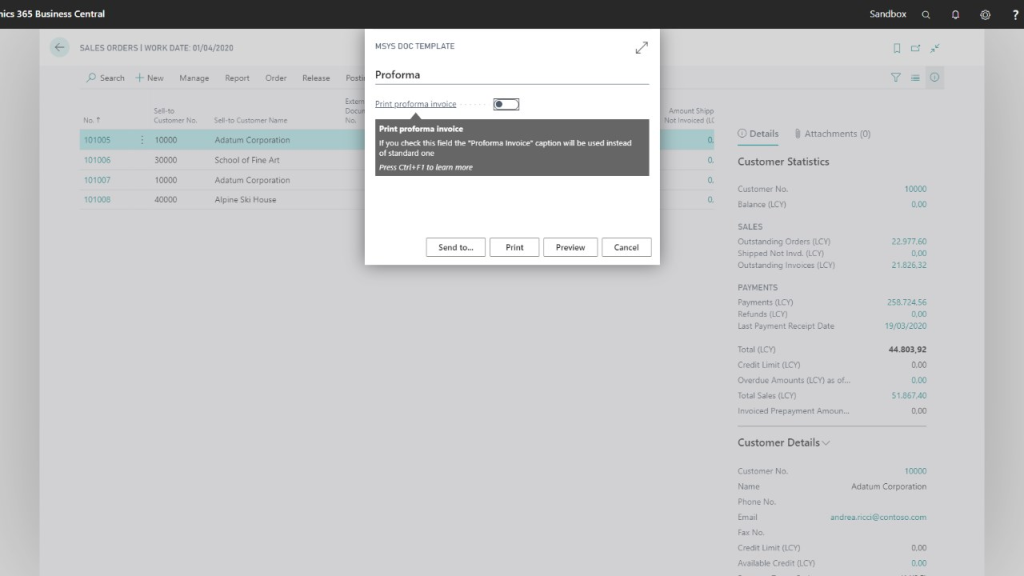 Layout di stampa pronto all’uso per documenti aziendali in Microsoft Dynamics 365 Business Central