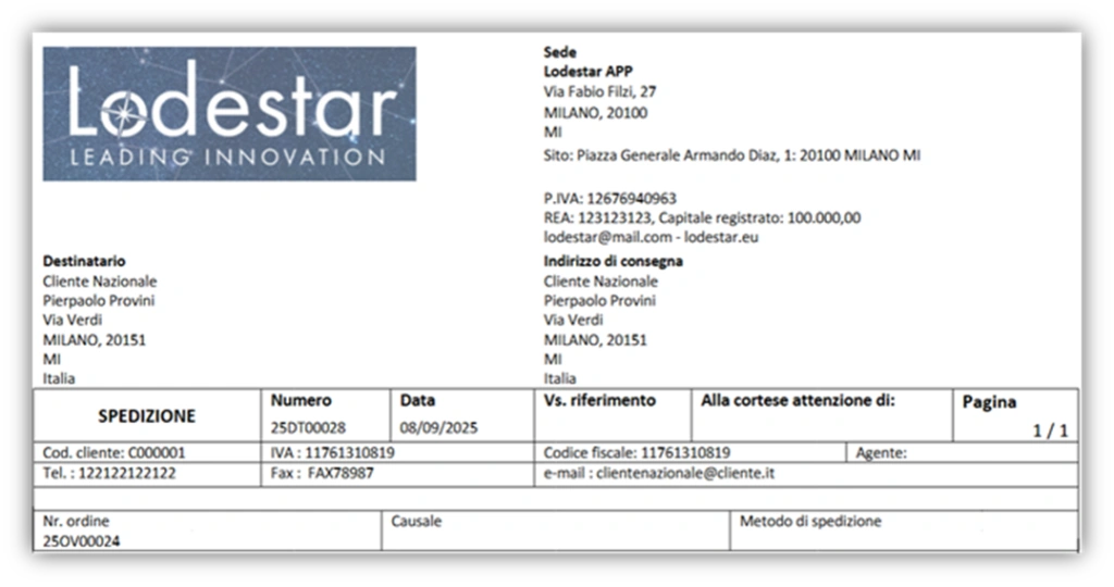Lodestar Reporting Italy prevede le seguenti aggiunte ai template: