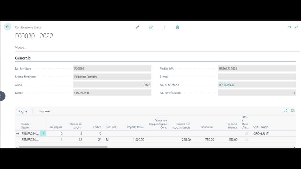 Gestione completa delle Certificazioni Uniche in Business Central